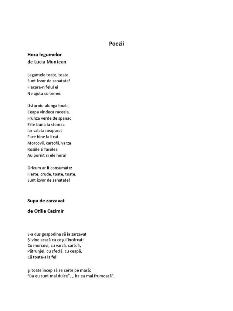 Biblioteca Publica Sinesti Posts Facebook Source from : https://www.facebook.com/Biblioteca-Publica-Sinesti-738370809610404/posts De lucia muntean legumele toate, toate sunt izvor de sanatate! Iar salata neaparat face bine la ficat. Șoapta vântului de lucia muntean. Ai grijă, însă să nu găteşti aceste legume la temperaturi mari, întrucât rişti să pierzi din aportul de vitamine şi minerale. La sfarsitul activitatii noastre voi va trebui sa recitati corect si expresiv intreaga poezie.