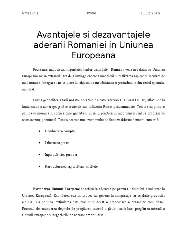 Romania In Ue Avantaje Si Dezavantaje