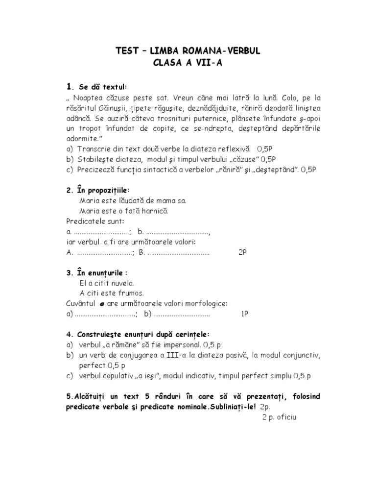 Test Romana Clasa 6
